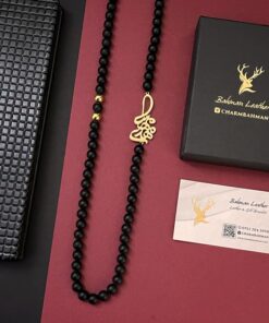 در مرکز این گردنبند یک پلاک طلا ۱۸ عیار با اسم فریبرز قرار گرفته که با طراحی حرفهای و خطاطی دقیق، جلوهای خاص و لوکس به این گردنبند داده است. استفاده از طلا در این محصول نهتنها ارزش مادی آن را بالا برده، بلکه جذابیت بصری آن را دوچندان کرده است. این پلاک با ظرافت بالا ساخته شده و درخشش آن در کنار سنگهای طبیعی، ترکیبی بینظیر ایجاد کرده است.